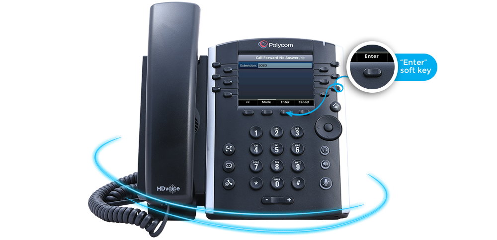 Use the directional pad to hover over and select the type of forwarding you seek to enable. Once selected, enter the extension, 7 or 10 digit number you wish to forward calls to, then select the “Enter” soft key"